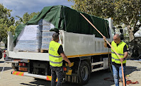 Φορτηγά με τόνους εμφιαλωμένο νερό, για να καλύψουν την άμεση ανάγκη των δοκιμαζόμενων κατοίκων της Θεσσαλίας. Την ανθρωπιστική βοήθεια του Δήμου Περιστερίου μαζί με τον Δήμαρχο, συνόδευαν ο Αντιδήμαρχος Γιώργος Τσίνας και ο Εντεταλμένος Δημοτικός Σύμβουλος Ιωάννης Καλαντώνης.